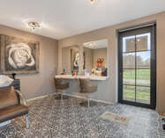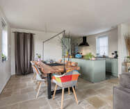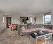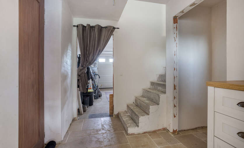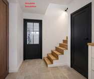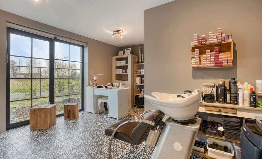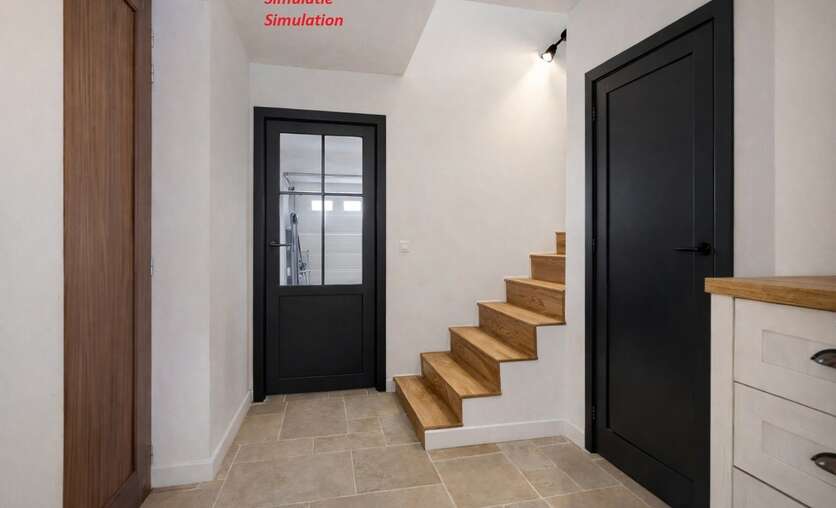 Depuis le hall d’entrée avec toilette invités, vous accédez au vaste séjour, qui offre une belle vue sur le jardin et les champs environnants. La cuisine ouverte s’intègre harmonieusement à l’espace de vie et en constitue le cœur. Attenante, vous trouverez une buanderie pratique avec espace pour machine à laver et sèche-linge. Le rez-de-chaussée comprend également un bureau séparé avec toilette supplémentaire, idéal pour un cabinet professionnel ou comme quatrième chambre. La maison dispose en outre d’un garage intégré avec porte automatique.