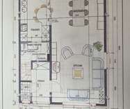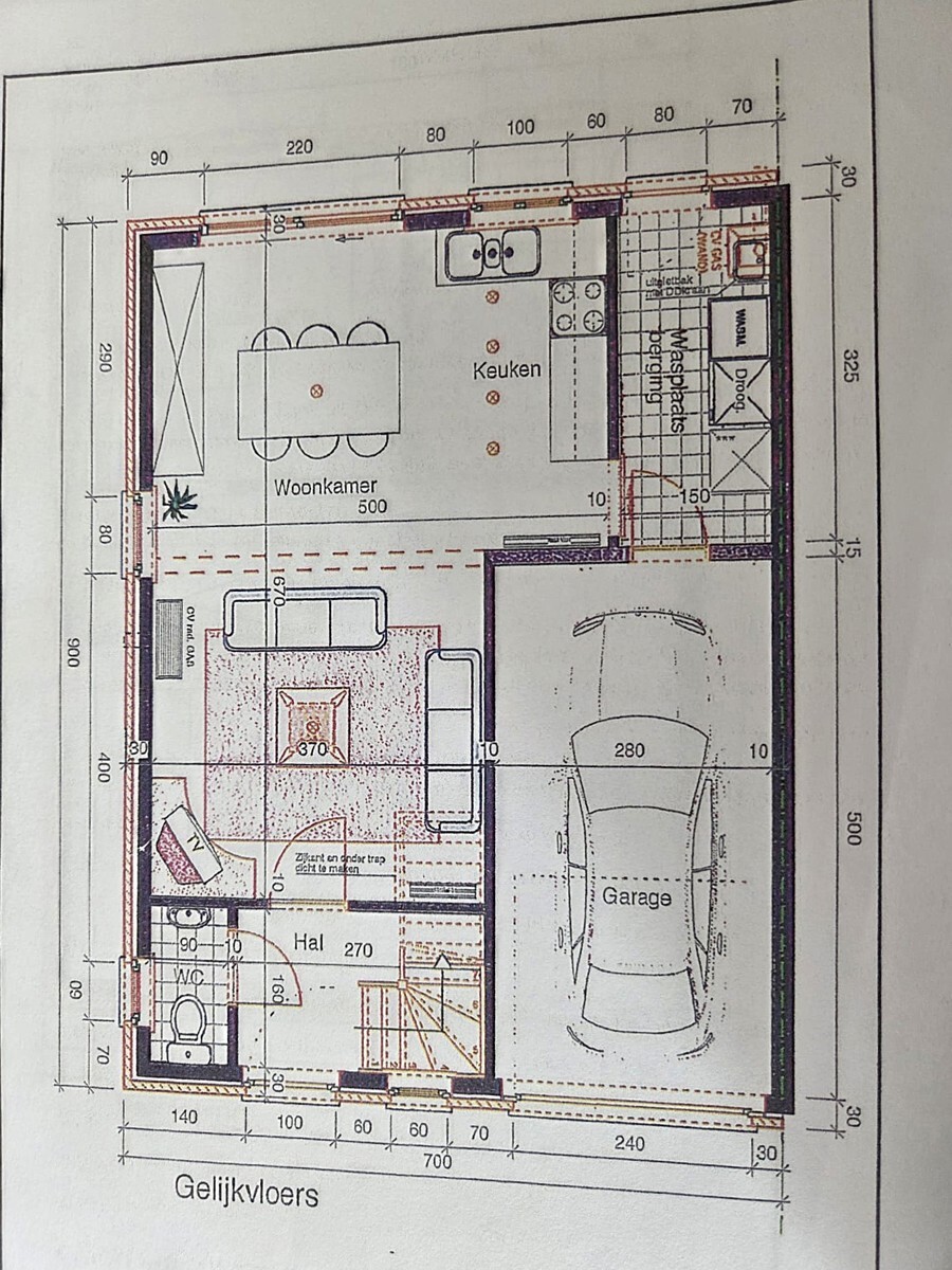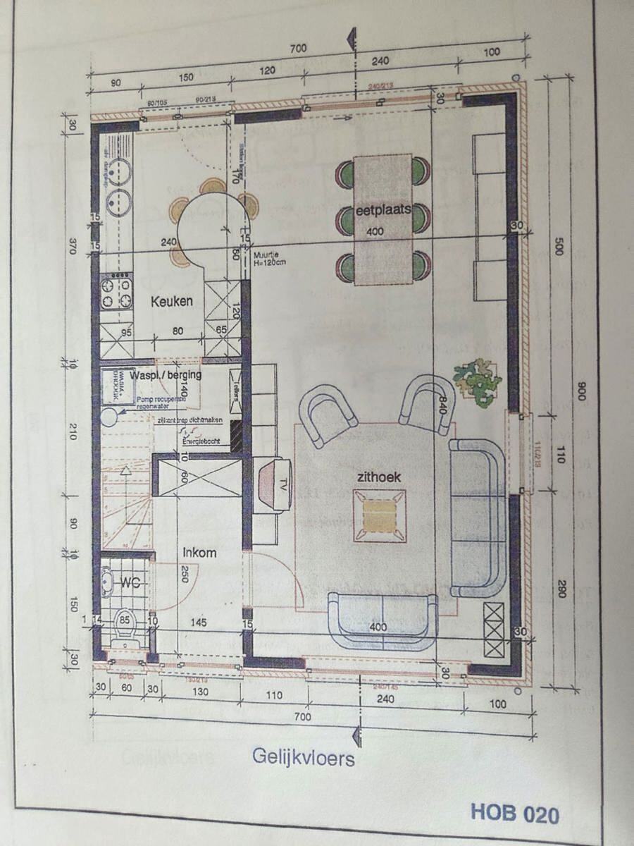 une maison avec hall d’entrée et WC séparé, spacieux séjour avec cuisine ouverte, buanderie, hall de nuit, 3 chambres et salle de bains,