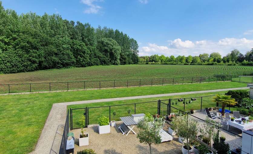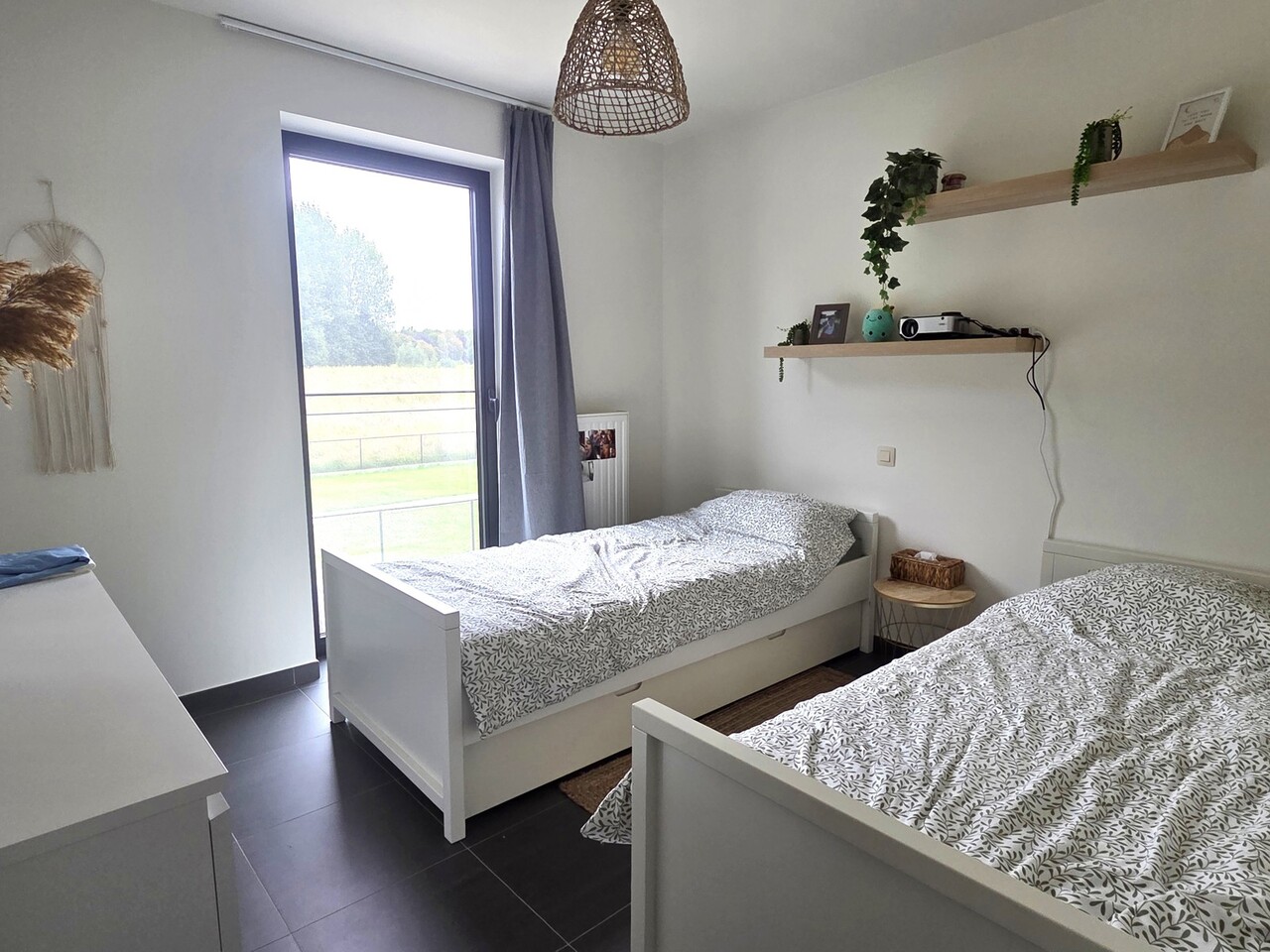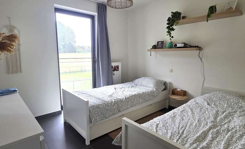 Omvattende: inkom, woonkamer, eetplaats met open keuken, terras, nachthal, apart toilet, berging, 2 slaapkamers, badkamer en ruim terras .
