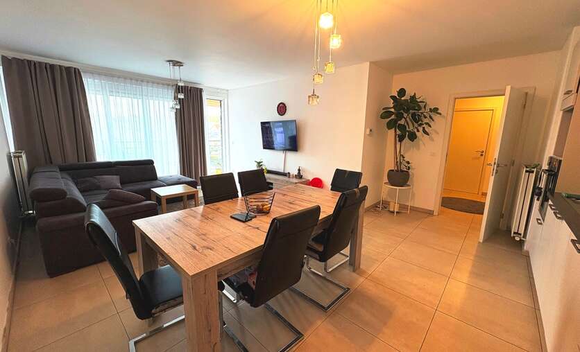 In de gegeerde wijk “Les Jardins de Jette” ontdek je dit prachtig en recent appartement met twee slaapkamers, waar comfort en rust hand in hand gaan. De lichtrijke leefruimte met open keuken geeft uit op een ruim terras met vrij uitzicht, zodat je in alle sereniteit van de buitenruimte kan genieten. Verder beschikt het appartement over een badkamer, een aparte WC en een praktische berging.