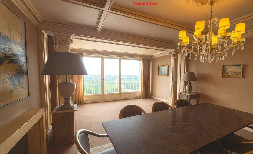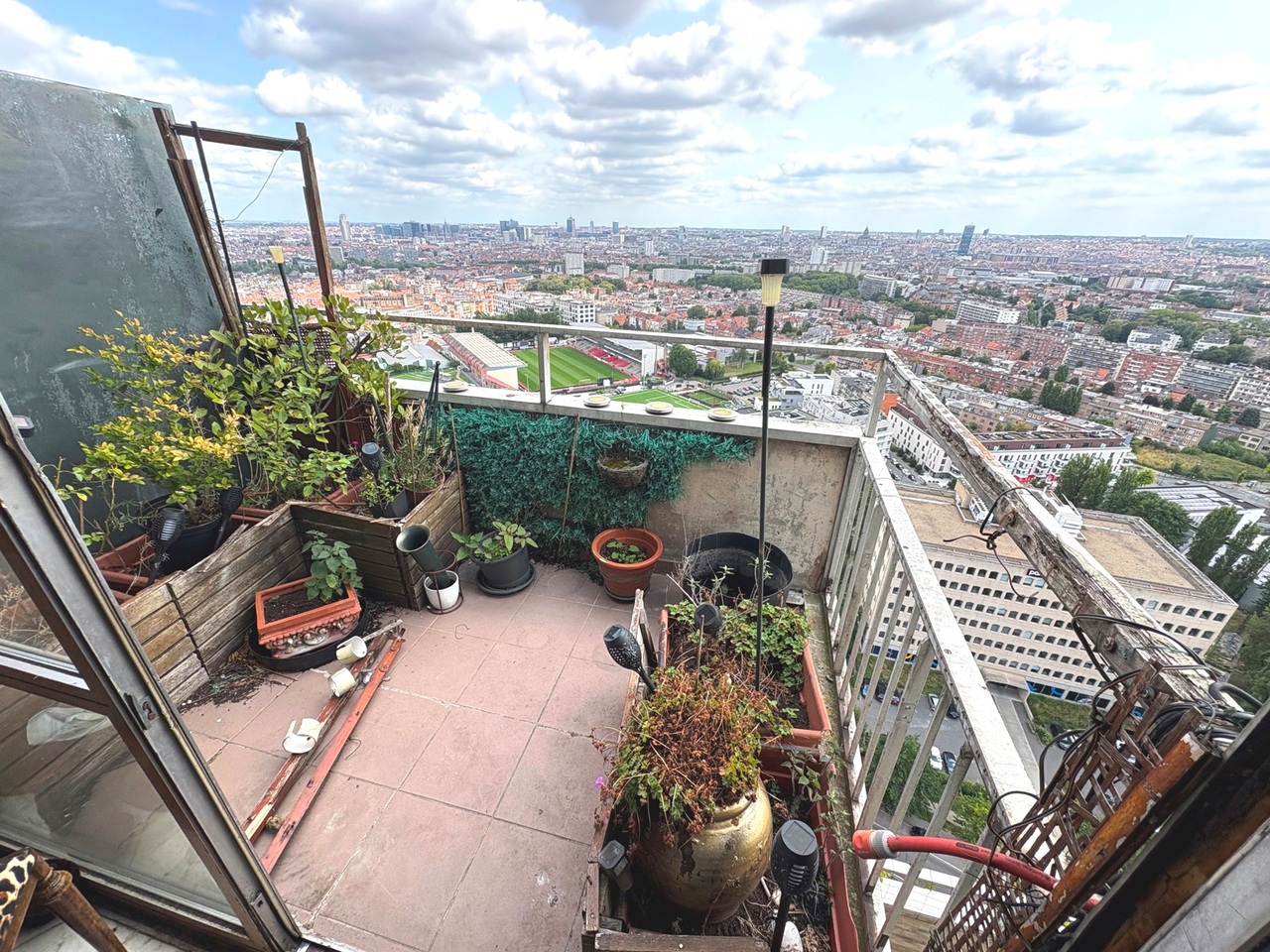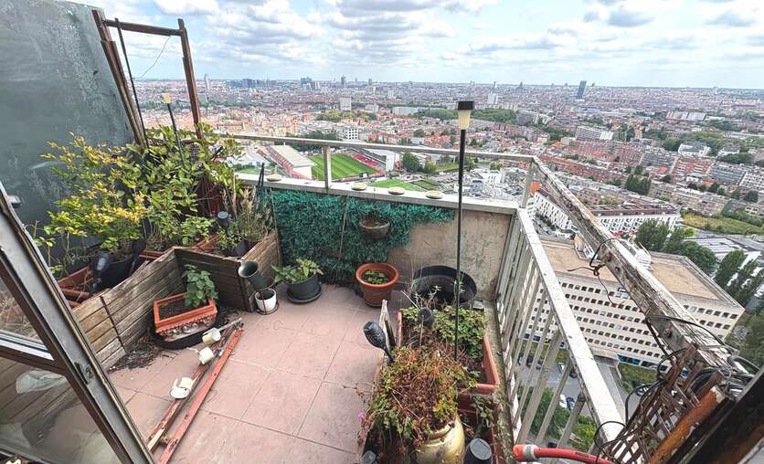 Welkom in dit appartement van 132 m² met 3 slaapkamers, gelegen op de 25ste en 26ste verdieping in Molenbeek. Deze te renoveren duplex biedt niet alleen ruimte, maar ook een uitzicht om stil van te worden. De lichtrijke leefruimte van meer dan 40 m² geeft uit op een zuidgericht terras met panoramisch zicht over Brussel. Verder op het gelijkvloers: een ruime inkomhal met gastentoilet, een aparte keuken, badkamer en twee volwaardige slaapkamers, elk met toegang tot een tweede terras.