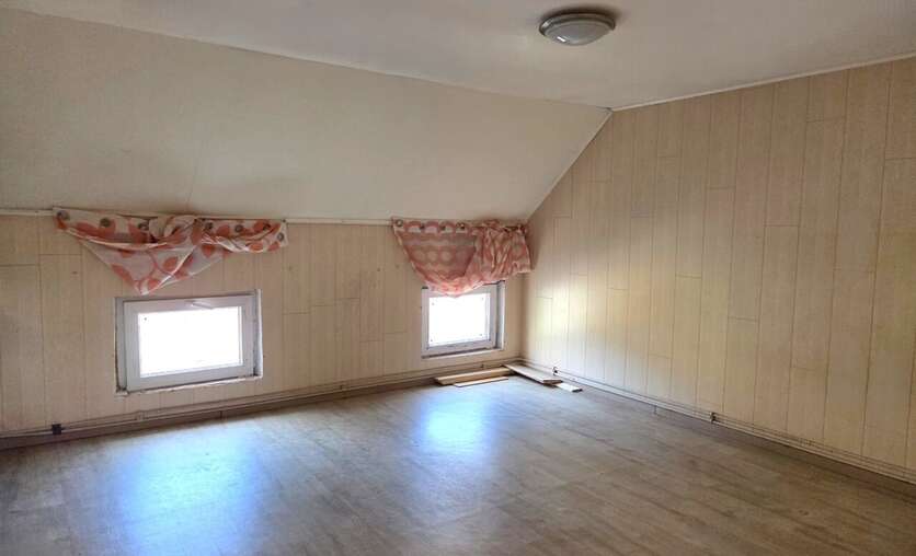 Op de bovenverdieping zijn er twee slaapkamers en een ingerichte zolder, bereikbaar via een uitschuifbare trap – ideaal als extra ruimte.
